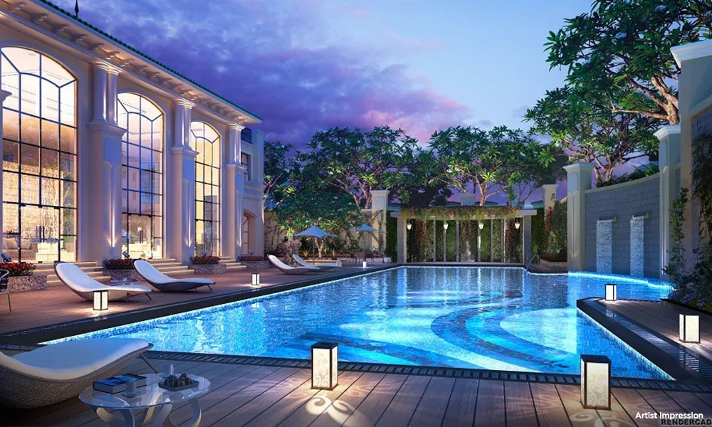 The project is spread across approximately 34 acres of land, with over 80% dedicated to open and green spaces, landscaped gardens, and wellness zones.