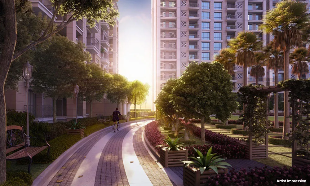 ATS Kingston Heath is considered one of the first wellness-themed luxury residential projects in Noida. It offers reflexology paths, yoga lawns, aromatherapy gardens, golf course views, and ultra-low density planning with only two apartments per floor.
