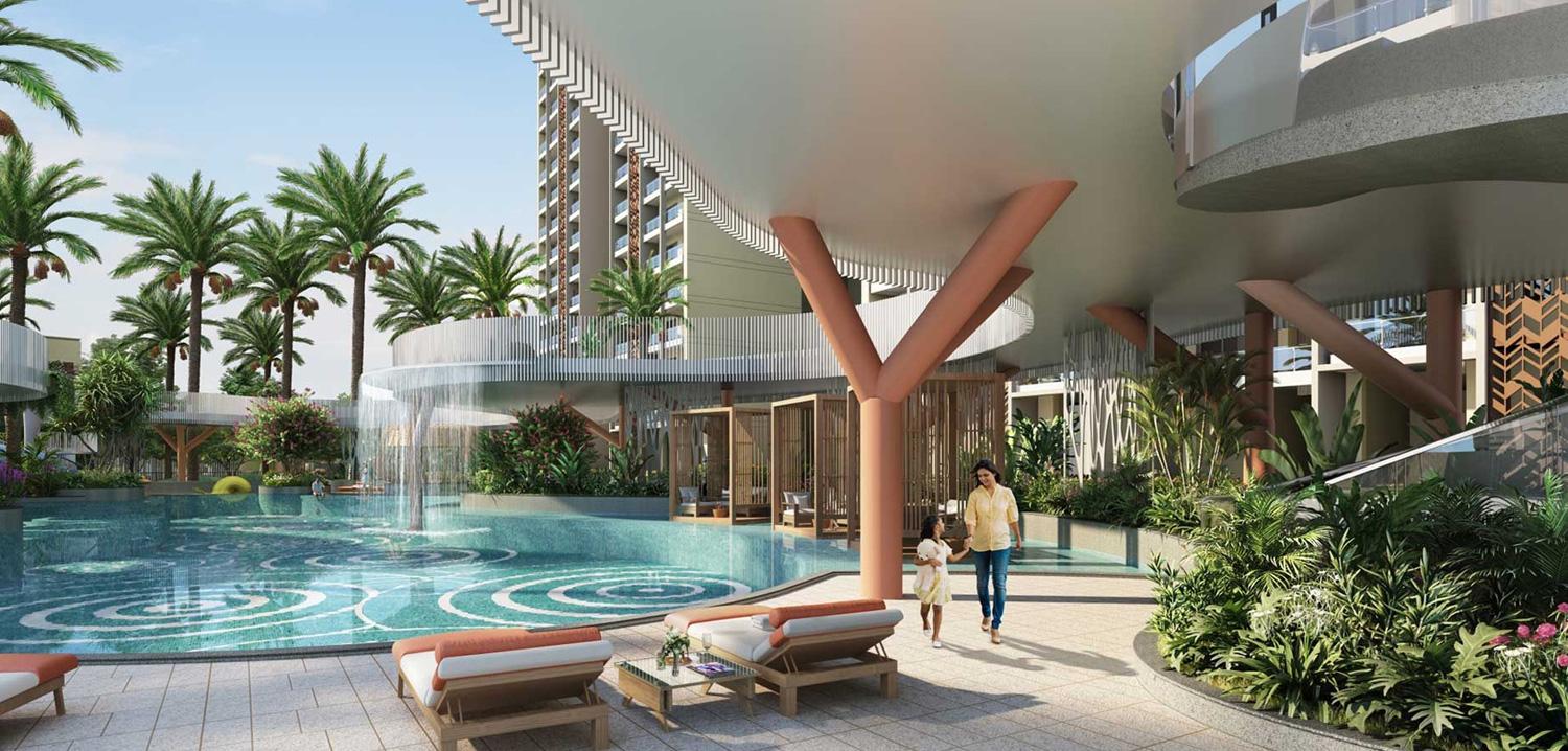 Inspired by the philosophy of the five natural elements – air, water, earth, fire, and ether, the project is thoughtfully planned with landscaped greens, serene water bodies, elevated walkways, and open spaces that bring harmony and balance to everyday living. The design ensures ample natural light, excellent ventilation, and privacy, creating homes that feel expansive and tranquil.