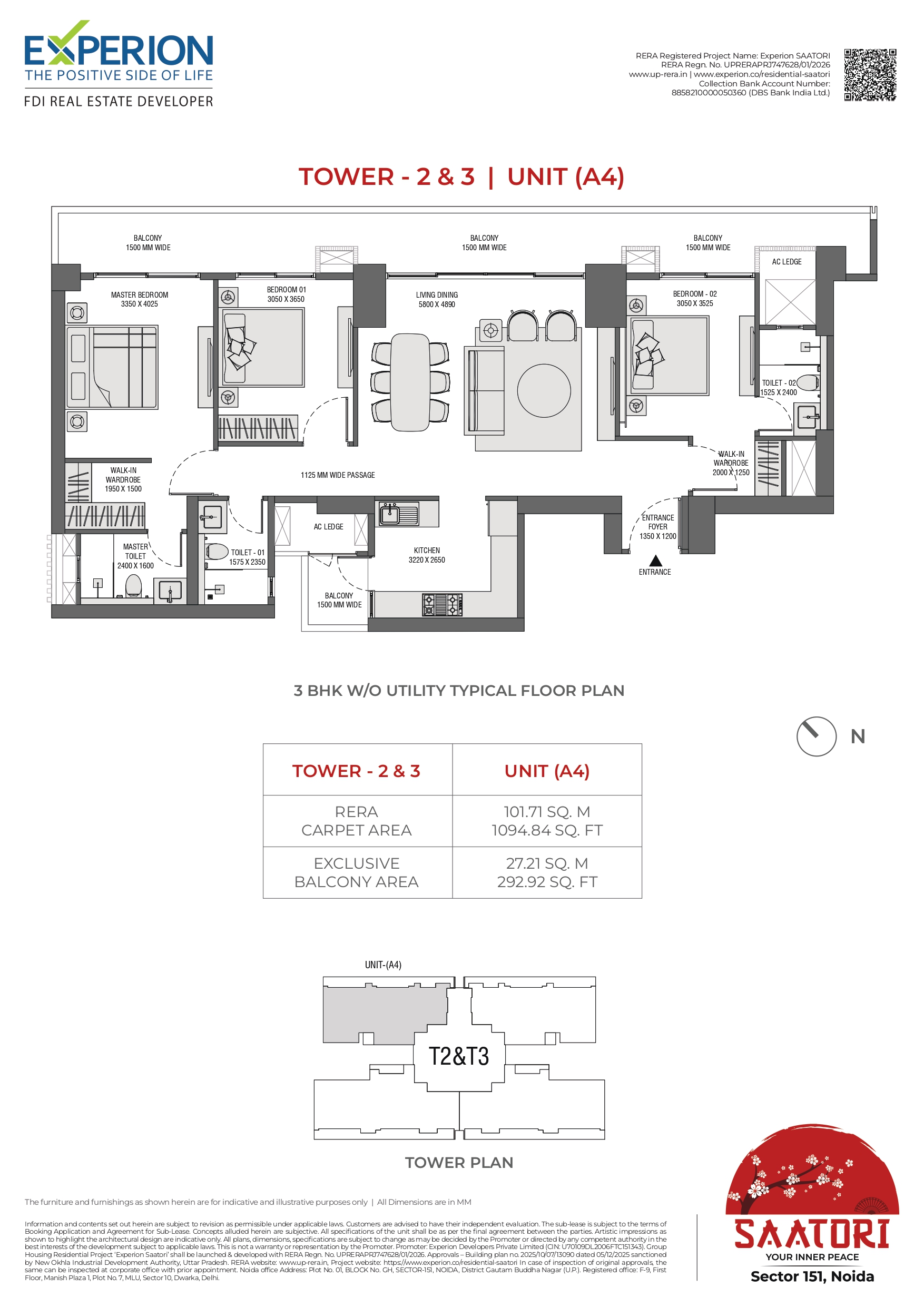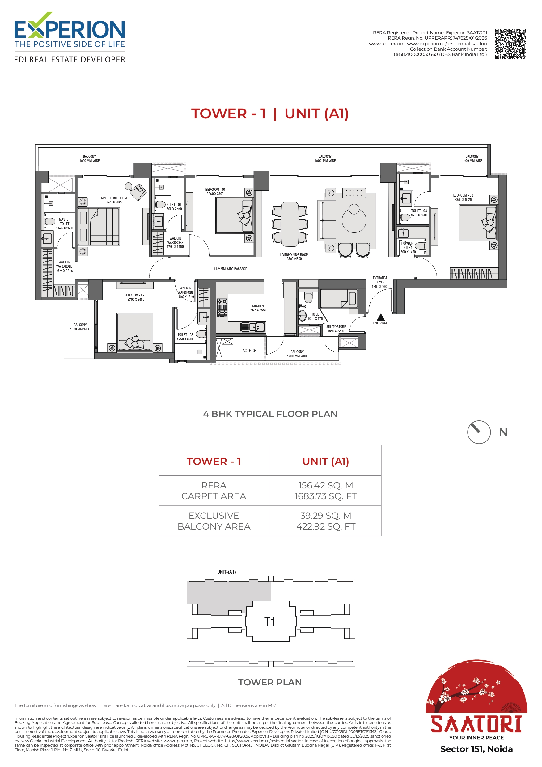 Experion Saatori is a new launch residential development located in Sector 151 Noida by Experion Developers, created to deliver a relaxed and luxurious lifestyle, a piece of Japan now in Noida. Spread over 5 acres, the project provides large 3 and 4 BHK apartments with stylish construction and top-tier amenities. With a deliberate assumption of 1,000 crore, this upcoming project is set to redefine built-up living with state-of-the-art amenities and exceptional connectivity.