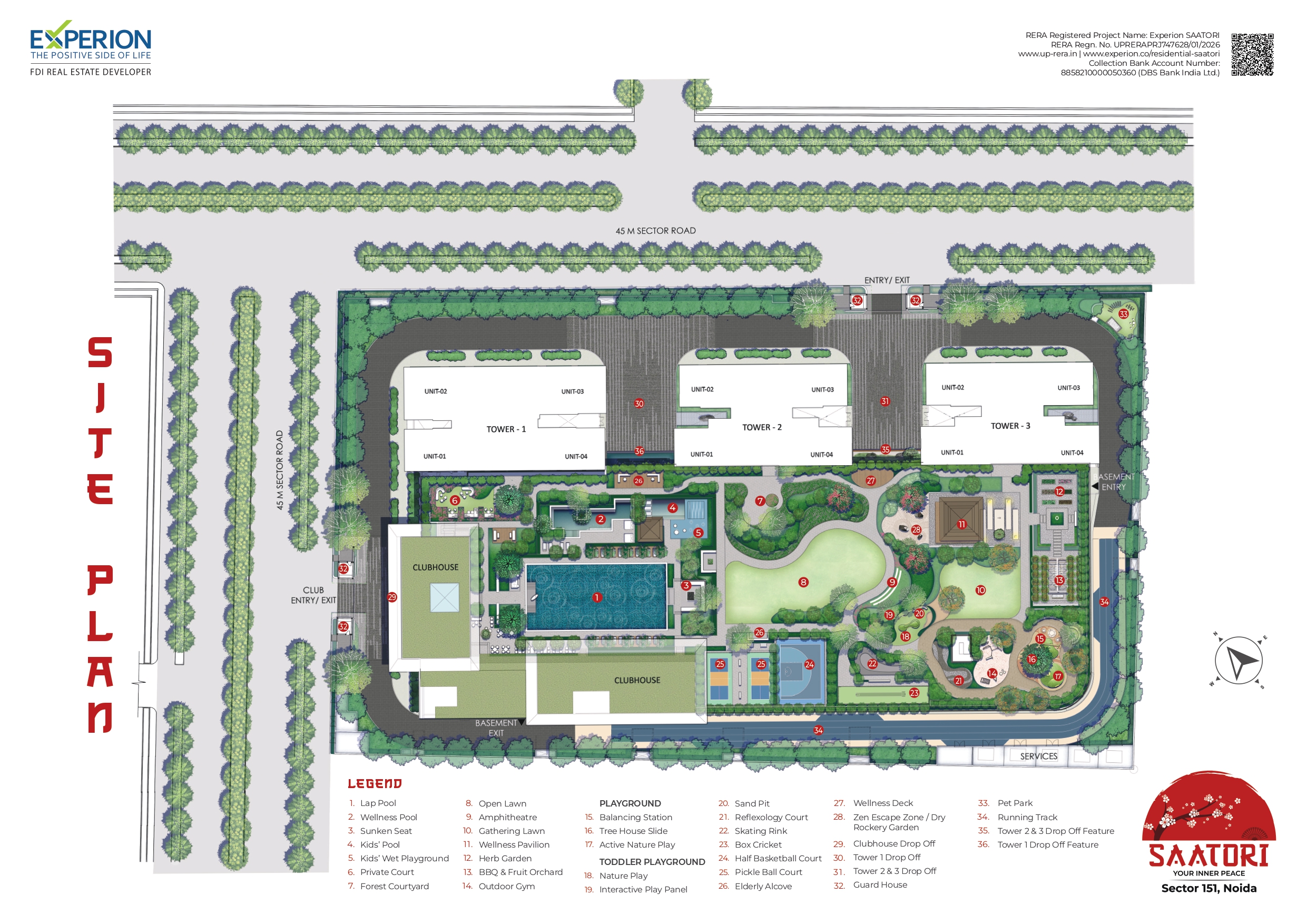 Experion Saatori, located in the fortunate Sector 151 of Noida, represents an exceptional example of ultra-premium, low-density residential living.  Situated on a strategically chosen 5-acre plot adjacent to the Noida-Greater Noida Expressway, this exclusive residential project is specifically designed to provide a sanctuary of space, privacy, and tranquility. Unlike traditional high-rise developments that often lead to congestion, Experion Saatori deliberately emphasizes a peaceful environment where natural beauty is the focal point, making it a distinct and rare offering in the NCR real estate market.