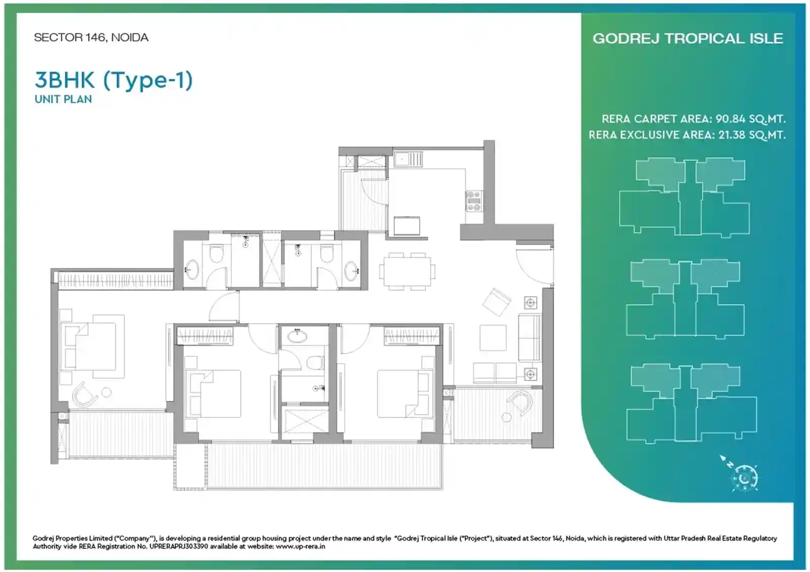 Godrej Tropical Isle Sector 146 Noida is set over 6.18 acres and has a special tropical theme that gives you a resort-like sensation every day. The project is safe, lawful, and reliable because it is RERA registered (UPRERAPRJ303390).