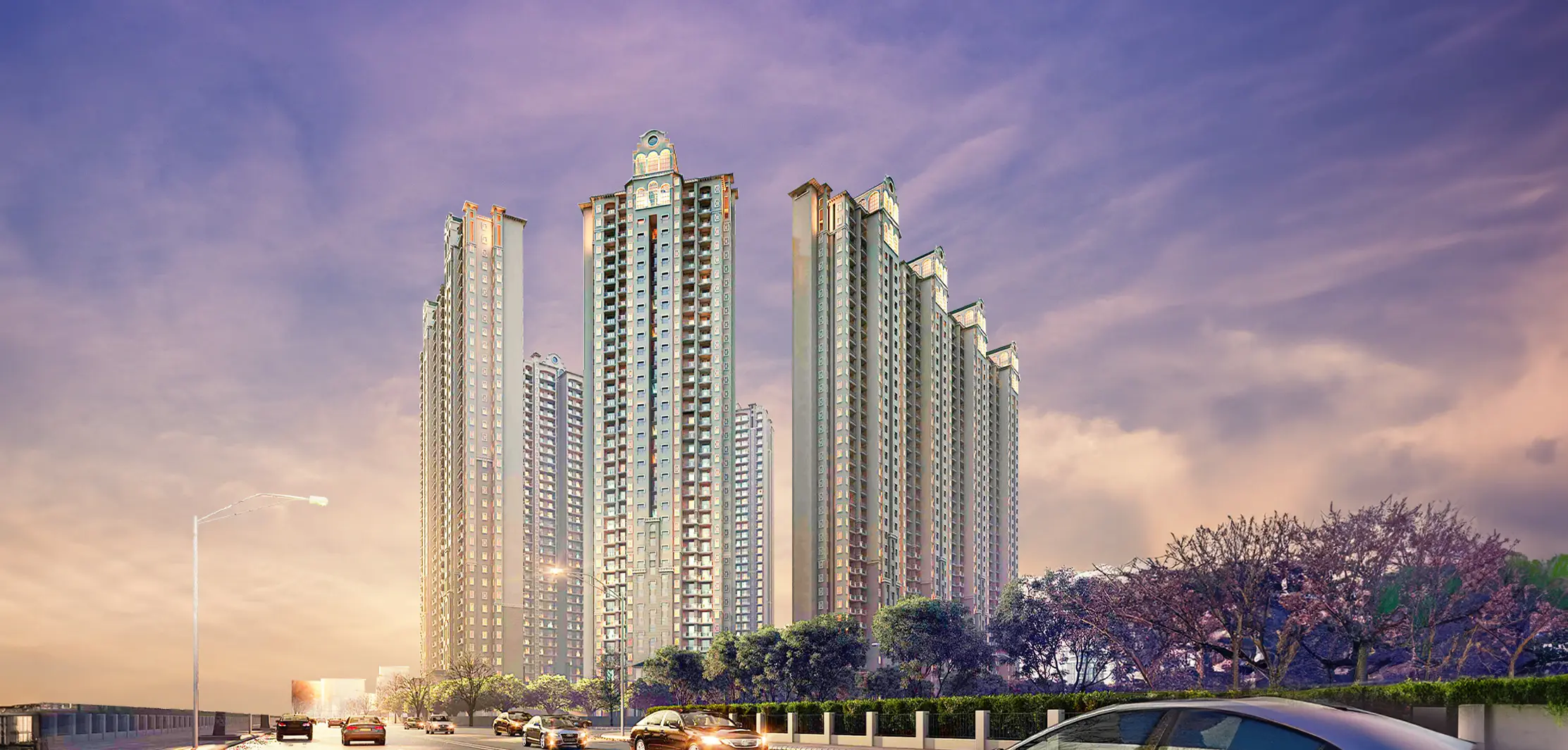 The project offers spacious 3 BHK, 4 BHK, and 5 BHK luxury apartments, thoughtfully designed with large layouts, wide balconies, and premium specifications.