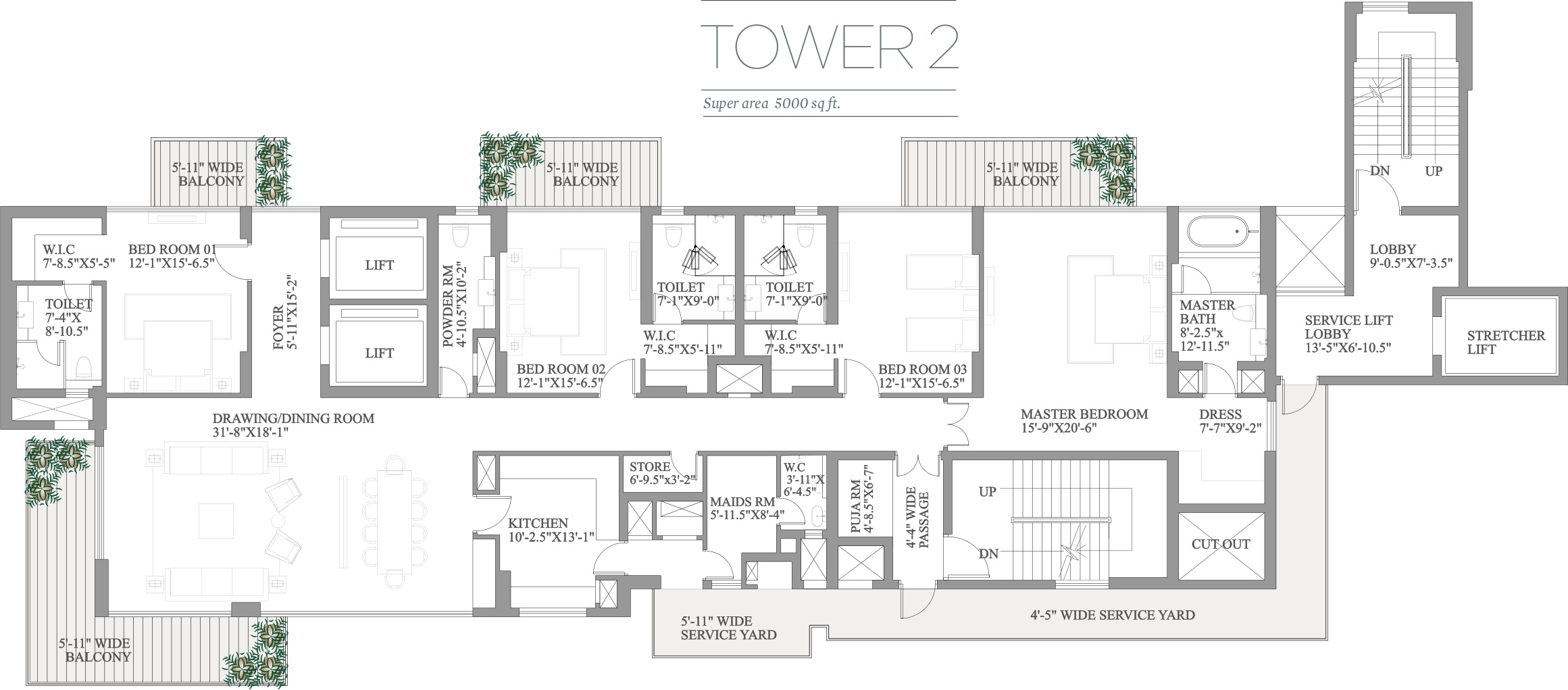| 4 BHK(Tower I) | 6000 Sq. Ft.* Onwards | On Request |
