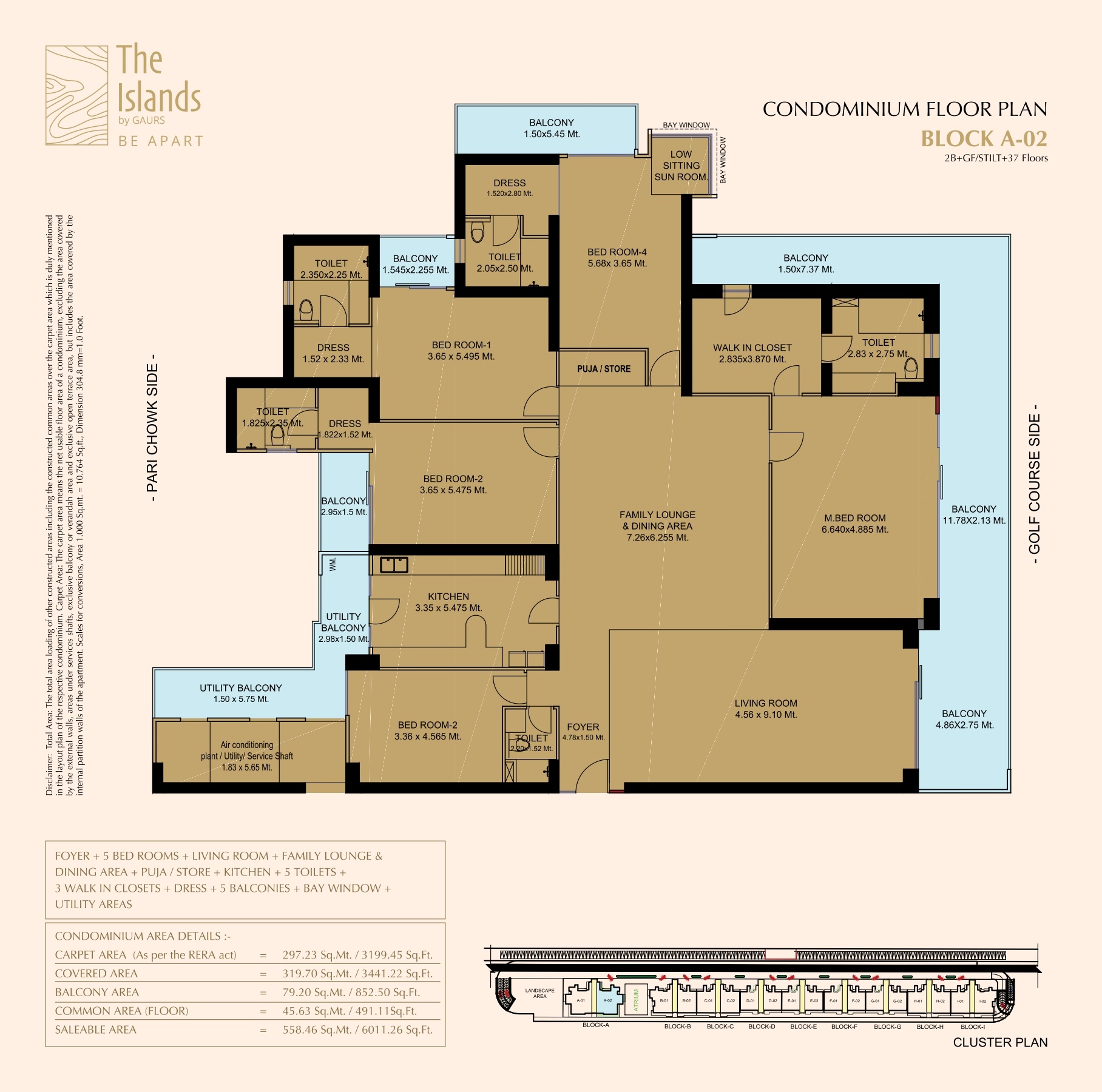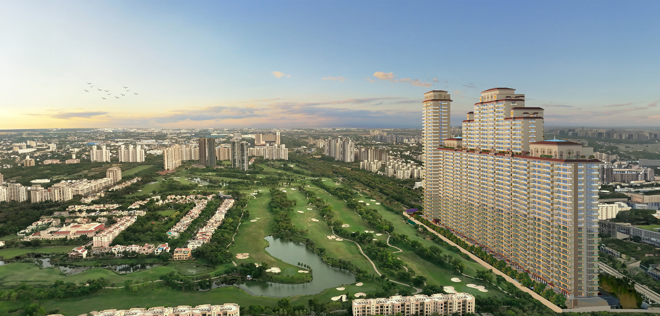 The development offers fully furnished 4 BHK and 5 BHK apartments along with exclusive penthouses, crafted for luxury homebuyers, professionals, NRIs, and investors seeking a high-end living experience. Each residence features spacious layouts, panoramic views of golf greens and landscaped open spaces, large windows for abundant natural light, and excellent cross-ventilation. Premium construction quality, elegant finishes, and modern design elements ensure a sophisticated and comfortable living environment.