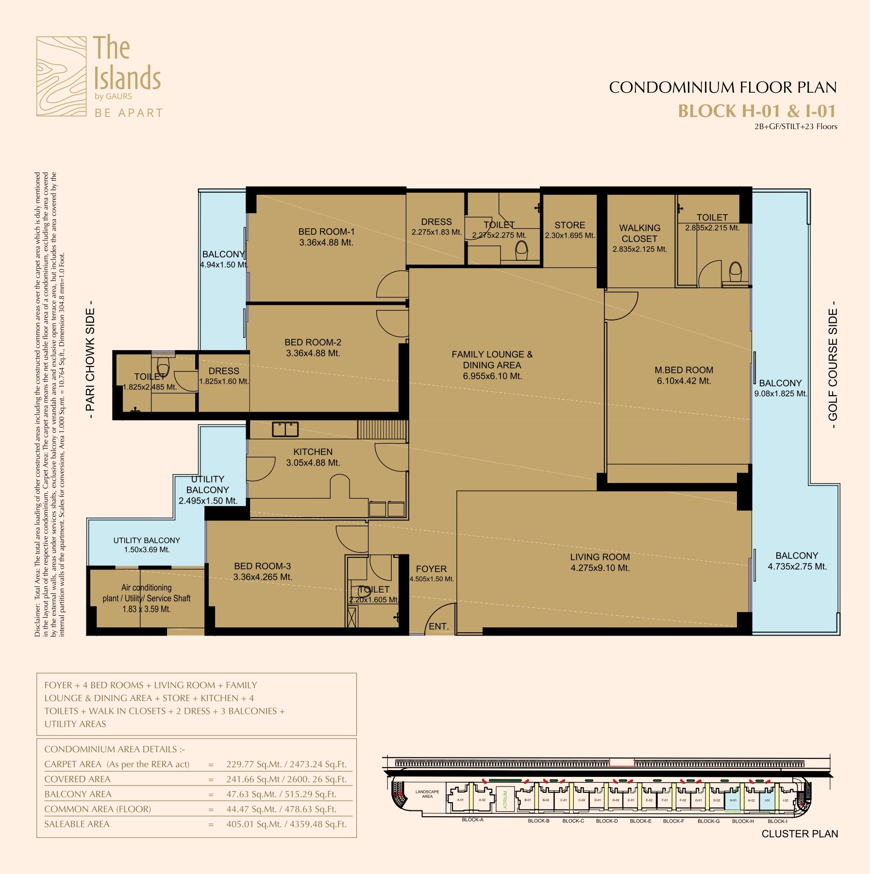 The Islands by Gaurs is spread over approximately 2.23 acres and consists of around 510 residential units across 9 Vastu-compliant towers, each with 35 floors, ensuring a low-density and exclusive living experience.