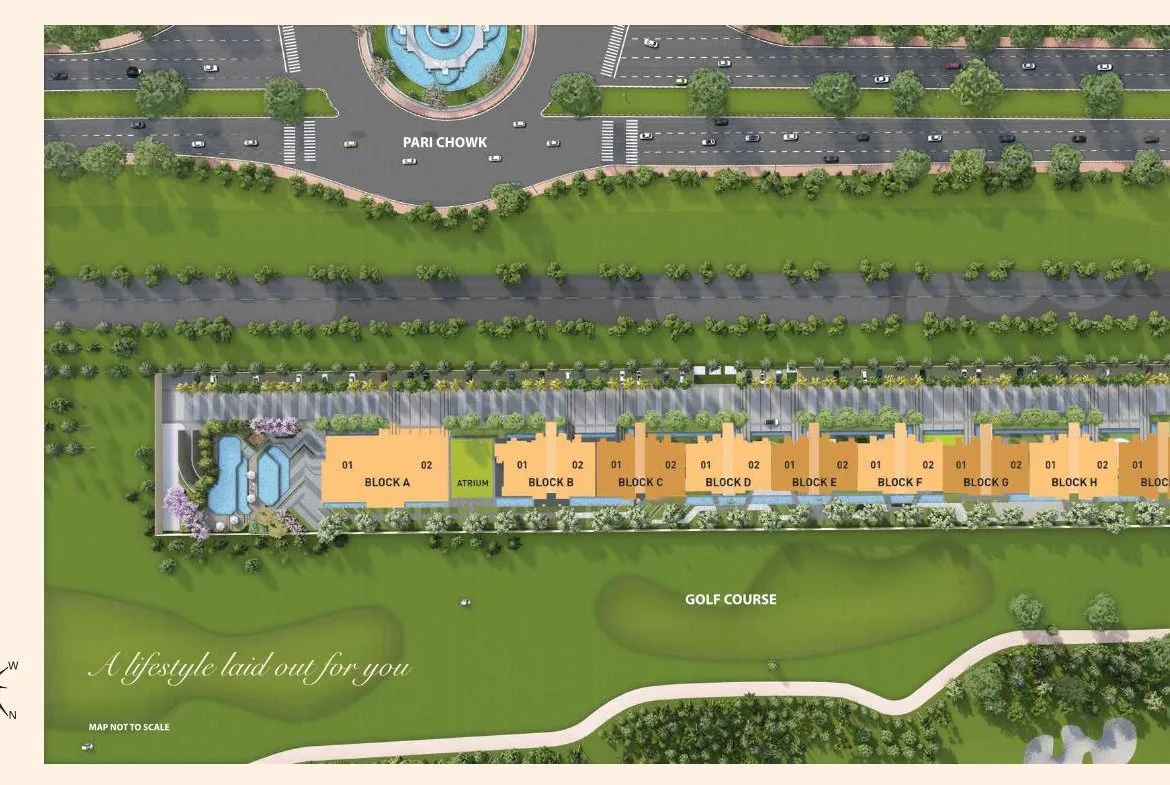 The project is located in Jaypee Greens, Greater Noida, near Pari Chowk. This is one of the most prestigious and green residential townships in the region, known for golf courses, wide roads, and premium infrastructure.