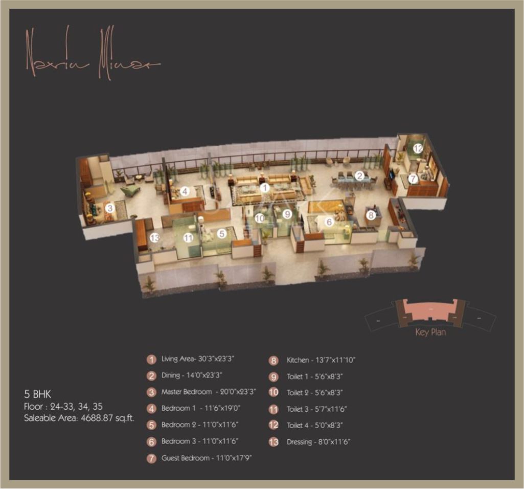 | 5 BHK Apartment | 4688 Sq. Ft. | On Request |