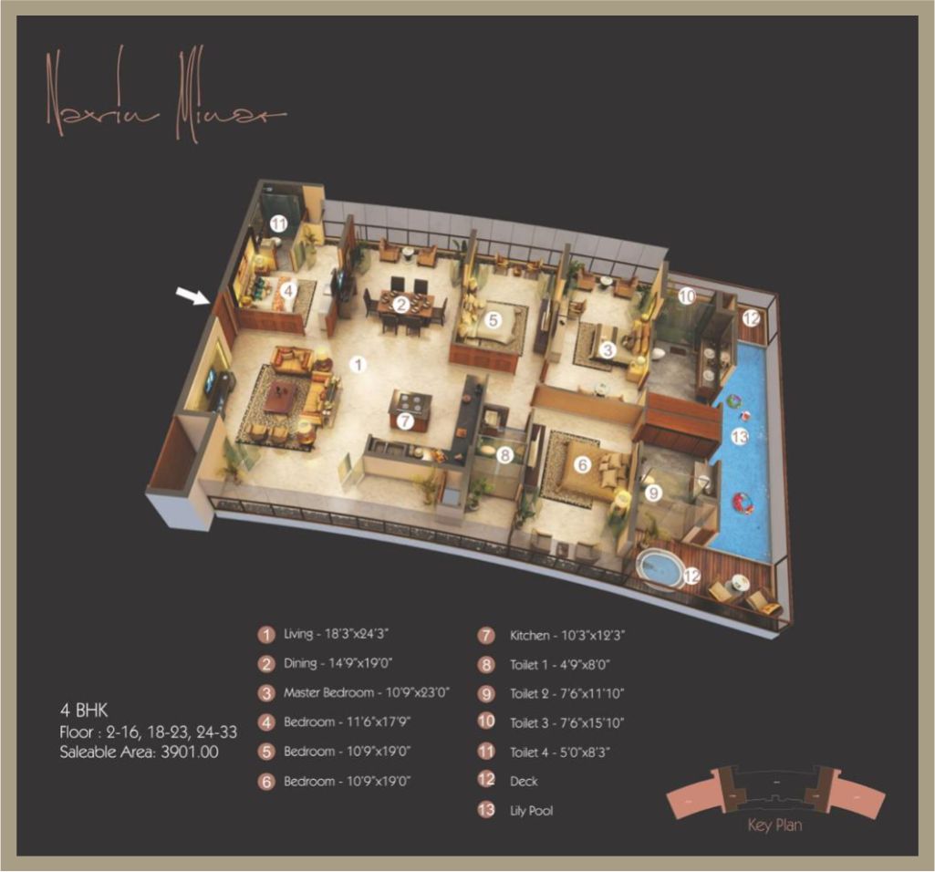 | 4 BHK Apartment | 3901 Sq. Ft. | On Request |
