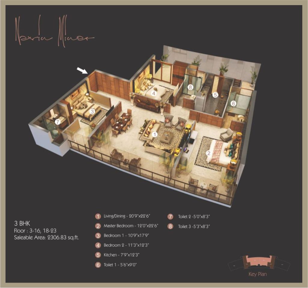 | 3 BHK Apartment | 2306 Sq. Ft. | 5.6 CR |